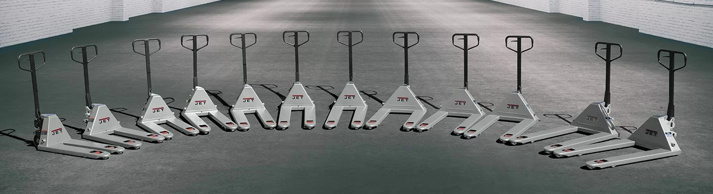 If you want to move your pallets the right way, it's time to get a JET Pallet Truck. JET industrial pallet jacks are designed to easily maneuver in tight spaces, and their forks can lift heavy-duty workloads.